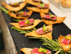 You do! That is why we take pride in the presentation of every hors d’oeuvre, entrée and station, as well as the flavor.